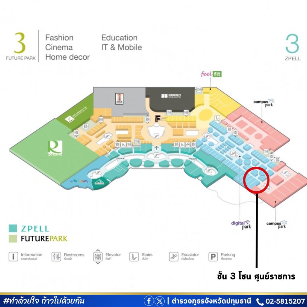 ณ ศูนย์ราชการ ชั้น 3 ห้างฟิวเจอร์พาร์ค รังสิต ตำบลประชาธิปัตย์ อำเภอธัญบุรี จังหวัดปทุมธานี