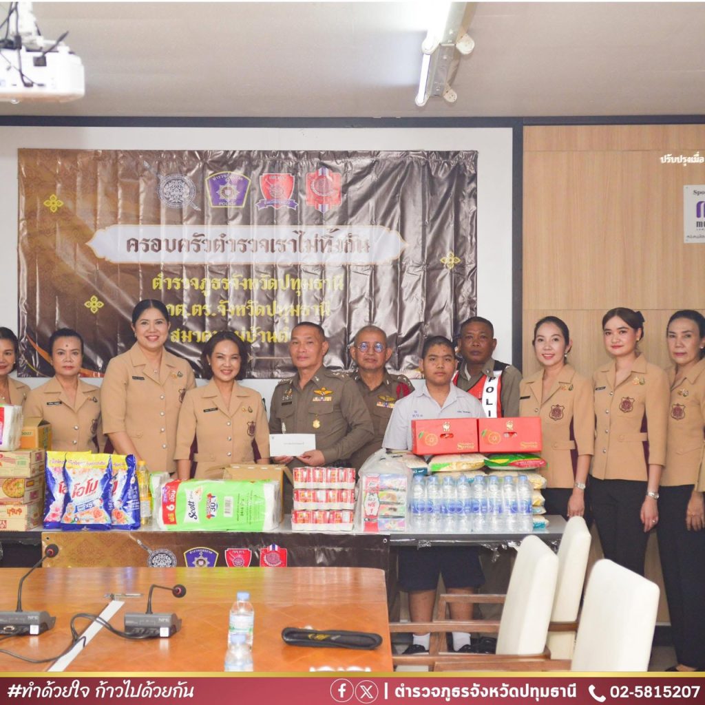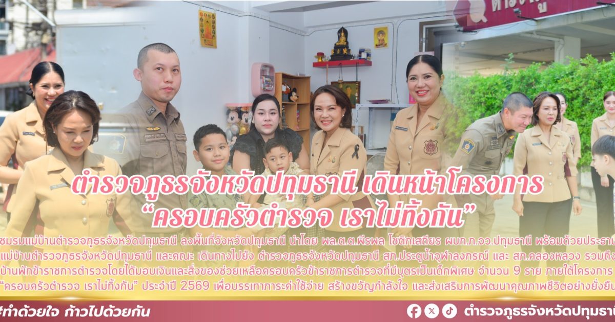 คณะชมรมแม่บ้านตำรวจ ภ.1 ลงพื้นที่จังหวัดปทุมธานี นำโดย พล.ต.ต.พีรพล โชติกเสถียร ผบก.ภ.จว.ปทุมธานี พร้อมด้วย คุณณัฎฐา โชติกเสถียร ประธานแม่บ้านตำรวจภูธรจังหวัดปทุมธานี และคณะแม่บ้านฯ รวมถึงข้าราชการตำรวจในสังกัด ร่วมดำเนินกิจกรรมตามโครงการ “ครอบครัวตำรวจ เราไม่ทิ้งกัน” ประจำปี 2569