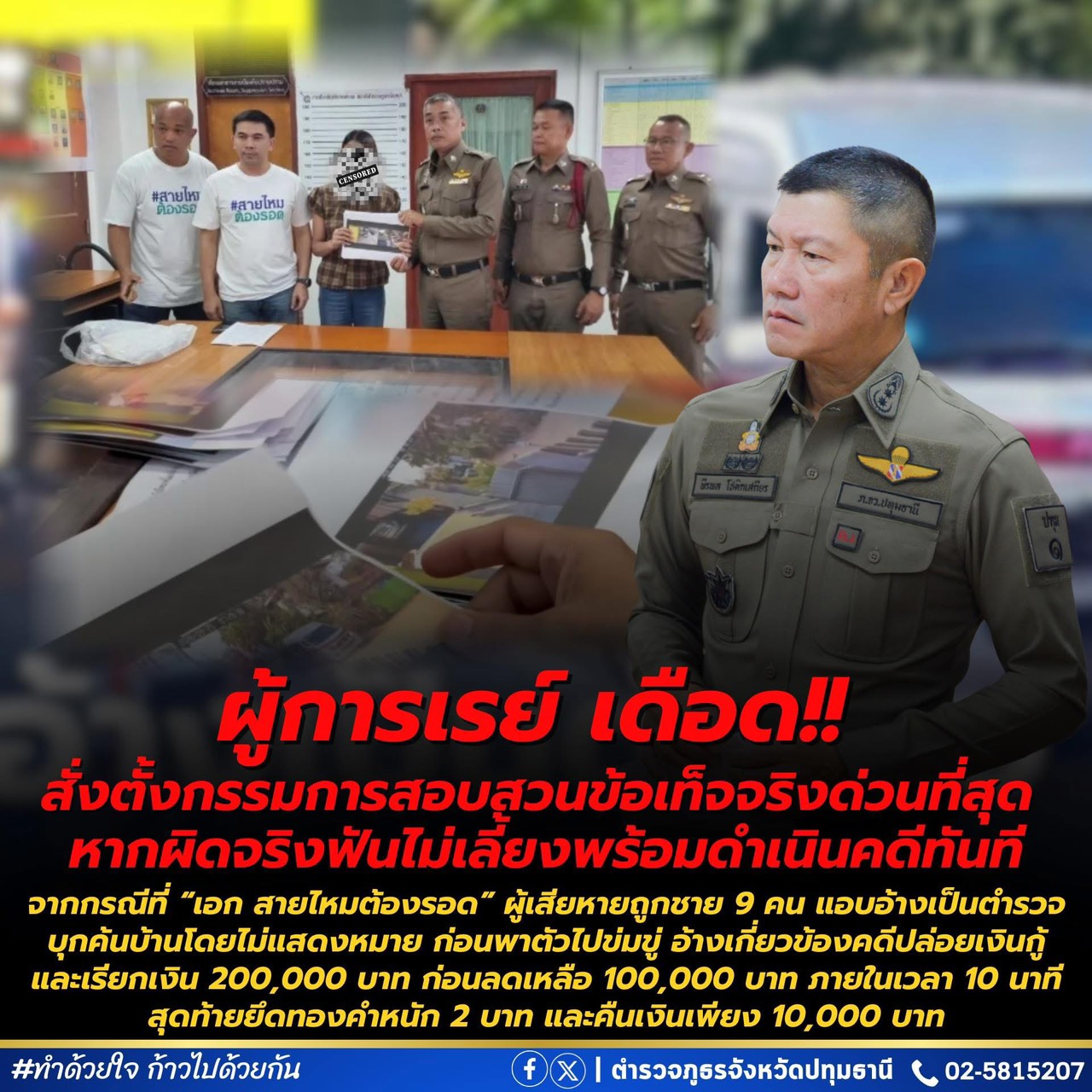 “ตำรวจภูธรจังหวัดปทุมธานีขอขอบคุณเพจสายไหมต้องรอดและประชาชน ที่ร่วมตรวจสอบการปฏิบัติหน้าที่ของตำรวจ