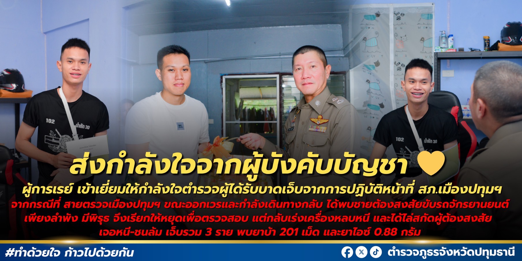 🚨 ผบก.ปทุมฯ เข้าเยี่ยมให้กำลังใจตำรวจบาดเจ็บ หลังไล่สกัดผู้ต้องสงสัยจนได้รับบาดเจ็บ