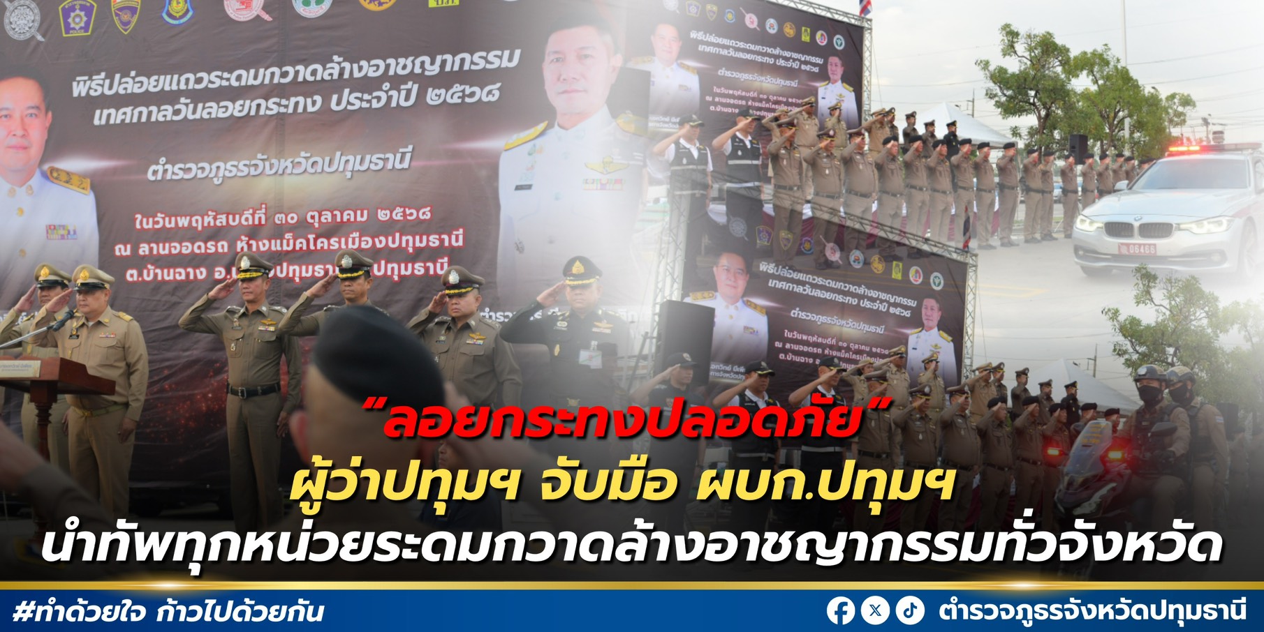 “ลอยกระทงปลอดภัย” ผู้ว่าปทุมฯ จับมือ ผบก.ปทุมฯ นำทัพทุกหน่วยระดมกวาดล้างอาชญากรรมทั่วจังหวัด . เมื่อ