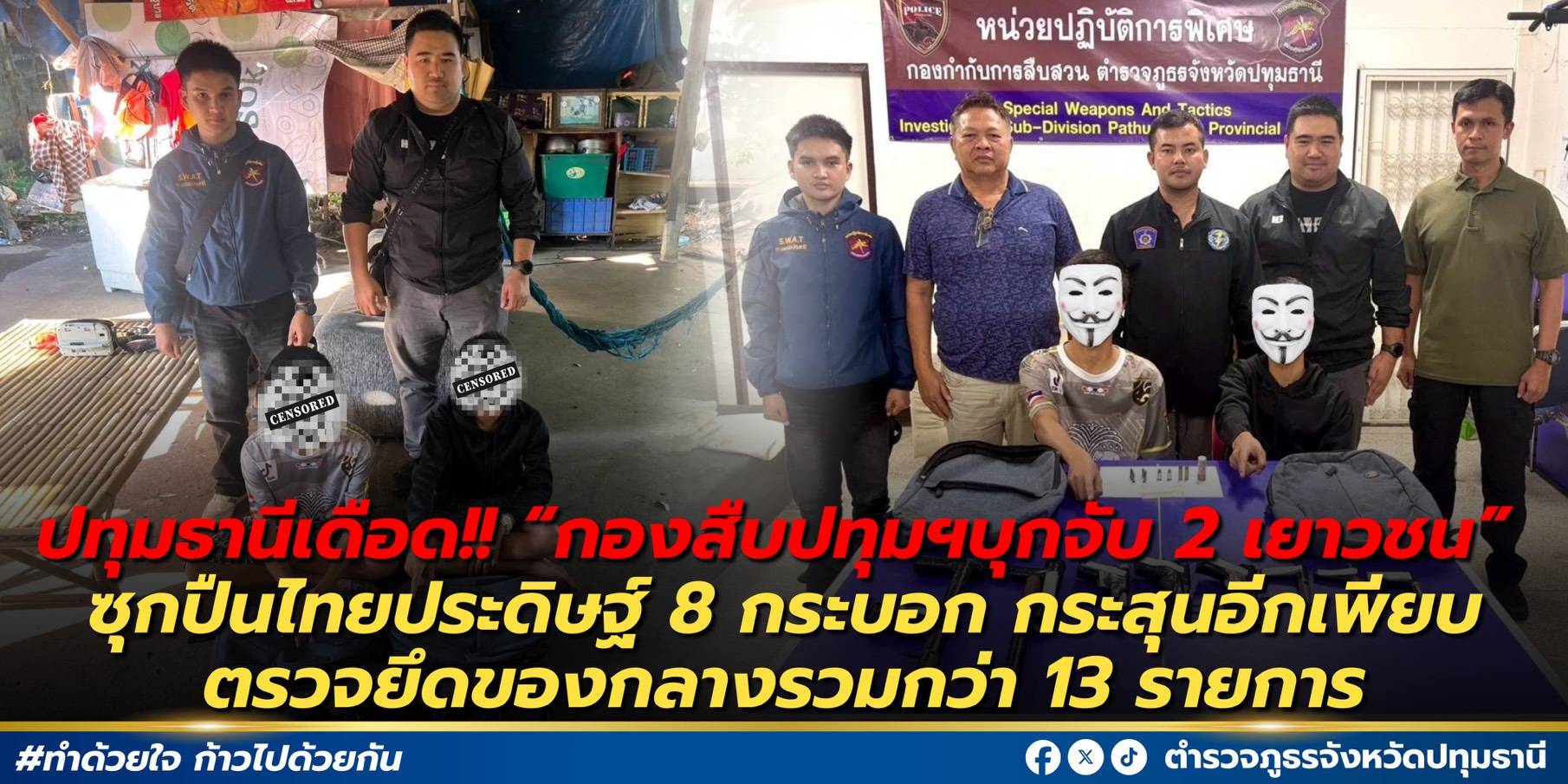 🔫 รวบ 2 เยาวชนวัย 15 ลอบครอบครองอาวุธปืนไทยประดิษฐ์ 8 กระบอก 🛑 ตรวจยึดของกลางรวม 13 รายการ อาวุธ–กระ