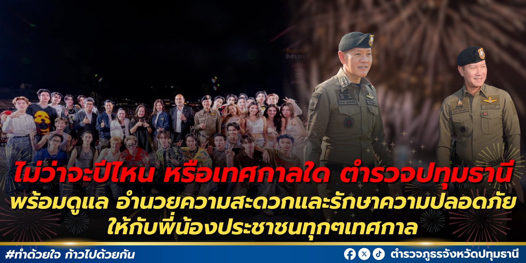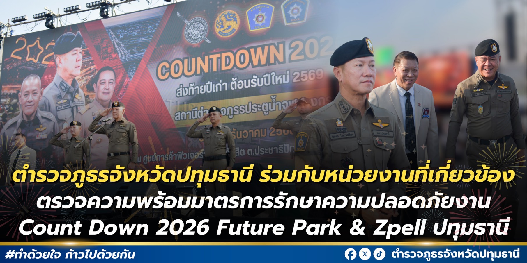 🎉 สวัสดีปีใหม่ 2569 🎆ตำรวจปทุมธานีขอส่งความปรารถนาดีถึงพี่น้องประชาชนทุกท่าน ขอให้มีความสุข ความปลอดภัย และสมหวังตลอดปีใหม่